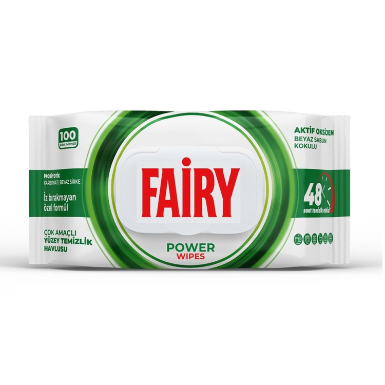دستمال مرطوب سطوح فیری Fairy مدل Power Wipes حاوی رایحه صابونی بسته 100 عددی